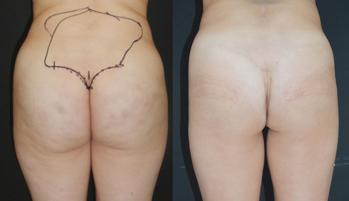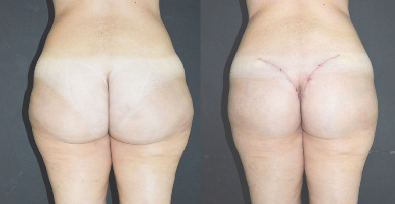 Es una cirugía paliativa. Que busca disminuir el volumen del polímero, silicona líquida, metilmetraquilato de la piel, grasa y músculo de los glúteos sin sacar tejido graso normal. Mediante la visualización del polímero se extrae parcialmente, todo aquel que se pueda sacar que no esté al rededor de tejido importantes y por ende produzca riesgos y secuelas. La cicatriz se esconde en una tanga de la porción superior, se quita la flacidez de la piel, se quita el tejido comprometido con cambios de coloración en la piel, la forma final del glúteo es la adecuada. Los casos severos pueden incluir varias cirugías.